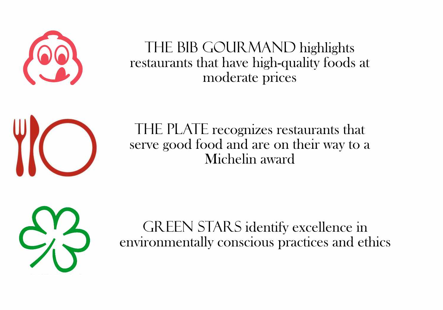 A star rating is, of course, the highest honour a restaurant can receive from Michelin, but the company isn't entirely focused on the upper end. There are secondary awards: